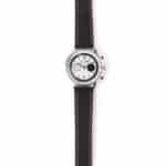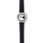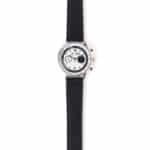 High-polish metallic hour & minute hands with lume and color lacquered chronograph seconds and subdial hands